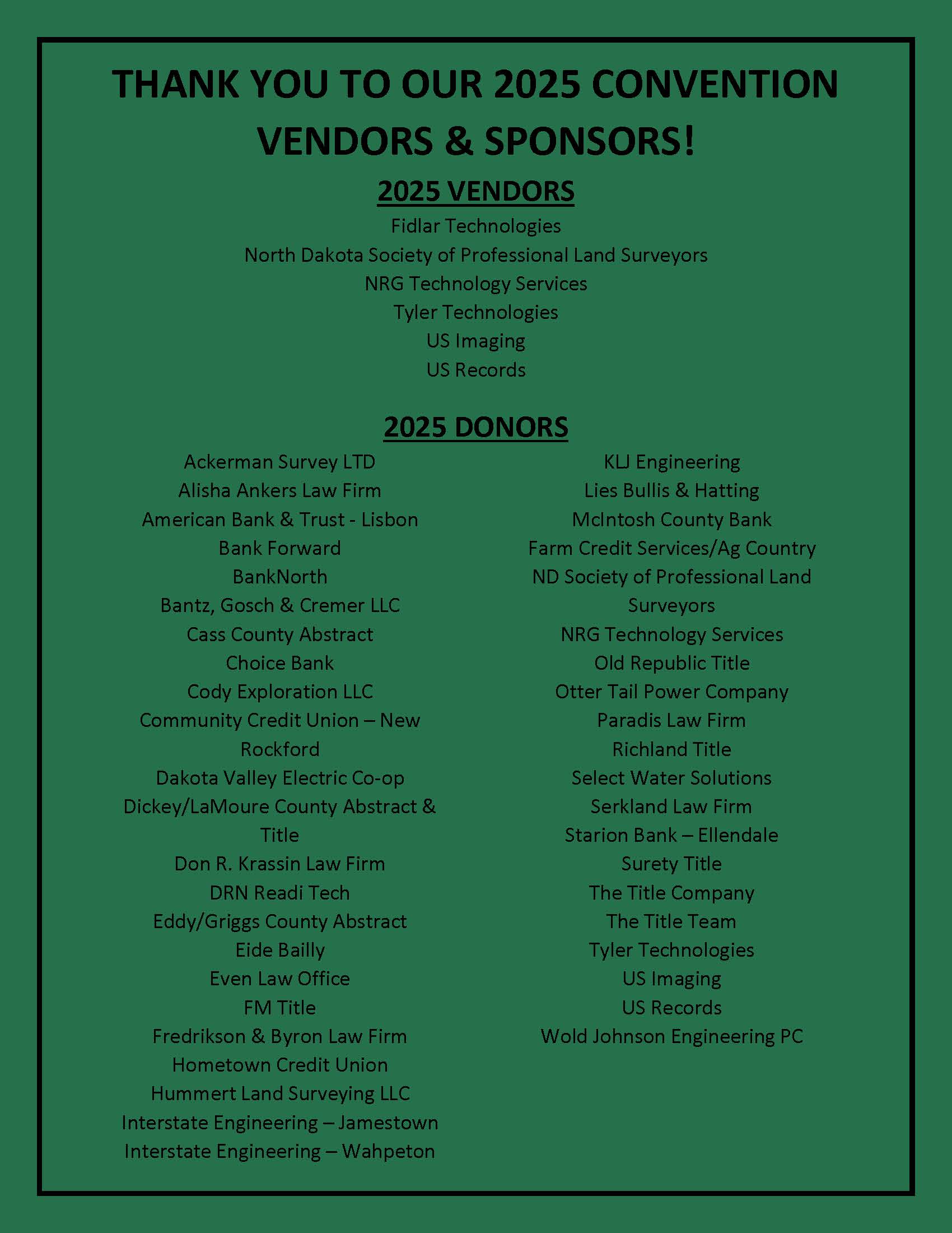 The County Recorders Association was organized in 1929 to help North Dakota's 53 counties keep up-to-date with changes in methods of recording and with changes in laws affecting their offices. Also monitors and proposes legislation to better serve the state. An annual summer meeting is held along with training sessions and Quad meetings. more trending_flat